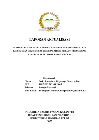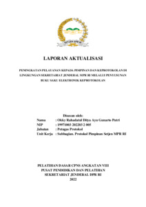 Putri, Okky Rahadatul Ditya Ayu Gunarto (2022) Peningkatan Pelayanan Kepada Pimpinan dan Keprotokolan di Lingkungan Sekretariat Jenderal MPR RI melalui Penyusunan Buku Saku Elektronik Keprotokolan. Project Report. Pusat Pendidikan dan Pelatihan, Jakarta.
