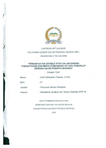 Prakoso, Arief Adhityanto (2019) Pemanfaatan Goggle Sites Dalam Sarana Pendaftaran dan Media Komunikasi Antara Pusdiklat dengan Calon Peserta Magang. Project Report. Pusat Pengembangan Kompetensi Sumber Daya Manusia Legislatif, Jakarta.