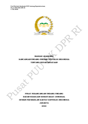 RUU tentang kepariwisataan. Naskah akademik ini diharapkan dapat digunakan sebagai bahan bagi