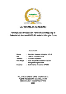 | Uncontrolled Keywords: | Magang, Google Form, Digitalisasi Administrasi, DPD RI, ASN BerAKHLAK, Smart ASN |