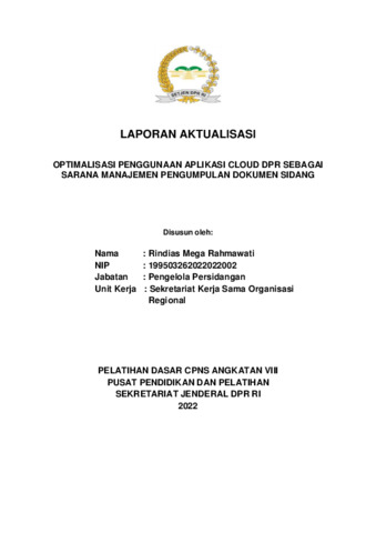 Laporan ini membahas optimalisasi penggunaan aplikasi Cloud DPR sebagai sarana manajemen pengumpulan dokumen sidang di lingkungan Sekretariat Kerja Sama Organisasi Regional. Sebelum kegiatan aktualisasi, dokumen sidang masih dikelola secara manual dan tersebar di berbagai perangkat, sehingga menyulitkan pencarian dan berisiko kehilangan arsip. Penulis melakukan langkah aktualisasi berupa mempelajari dan menguji fitur aplikasi Cloud DPR, melakukan koordinasi dengan BDTI terkait keamanan dan penyimpanan dokumen, mengunggah dokumen sidang ke dalam sistem, membuat folder terstruktur berdasarkan masa sidang dan jenis dokumen, serta melakukan sosialisasi penggunaan Cloud DPR kepada rekan kerja. Evaluasi menunjukkan adanya peningkatan efisiensi pencarian data, penghematan ruang penyimpanan, serta dukungan terhadap upaya paperless office. Inovasi ini juga meningkatkan kolaborasi internal dan mendukung penerapan nilai ASN BerAKHLAK (Berorientasi Pelayanan, Akuntabel, Kompeten, Adaptif, Kolaboratif) serta prinsip Smart ASN dalam transformasi digital di Sekretariat Jenderal DPR RI.