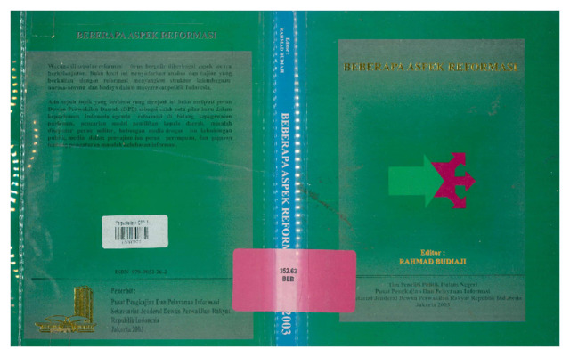 Sekretariat Jenderal DPR RI, Pusat Pengkajian dan Pelayanan Informasi (2003) Beberapa Aspek Reformasi. Sekretariat Jenderal DPR RI. ISBN 9799052262