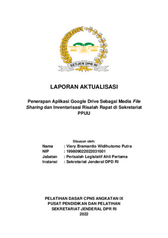 Laporan aktualisasi ini berjudul “Penerapan Aplikasi Google Drive sebagai Media File Sharing dan Inventarisasi Risalah Rapat di Sekretariat PPUU”. Inovasi ini berangkat dari permasalahan belum tersedianya sistem penyimpanan digital berbasis cloud untuk risalah rapat dan dokumen penting di Sekretariat PPUU DPD RI. Viery mengembangkan sistem penyimpanan berbasis Google Drive agar risalah rapat, laporan singkat, dan notulensi rapat dapat dikelola secara terpusat, terorganisasi, dan mudah diakses oleh seluruh pegawai, termasuk saat dinas luar. Proses pelaksanaan mencakup koordinasi dengan mentor, identifikasi dokumen, penggabungan data arsip, pembuatan folder digital, sosialisasi internal, serta evaluasi pengguna. Hasil evaluasi menunjukkan peningkatan efisiensi, kemudahan akses arsip, serta dukungan positif dari pengguna. Implementasi ini sekaligus memperkuat budaya kerja digital, meningkatkan transparansi arsip, dan mewujudkan prinsip paperless office di lingkungan Setjen DPD RI.