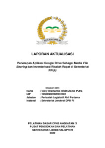 Putra, Viery Bramantio Widihutomo (2022) Penerapan Aplikasi Google Drive sebagai Media File Sharing dan Inventarisasi Risalah Rapat di Sekretariat PPUU. Project Report. Pusat Pendidikan dan Pelatihan, Jakarta.