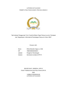 Kappuw, Wilda Marsella (2022) Optimalisasi Penggunaan Form Checklist Bahan Rapat Paripurna untuk Persiapan dan Pengarsipan di Sekretariat Persidangan Paripurna Tahun 2022. Project Report. Pusat Pendidikan dan Pelatihan, Jakarta.