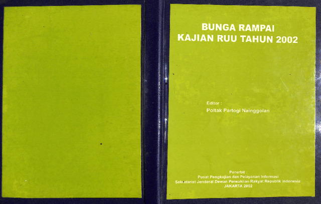 Sekretariat Jenderal DPR RI, Pusat Pengkajian dan Pelayanan Informasi (2002) Bunga Rampai Kajian RUU Tahun 2002. Pusat Pengkajian dan Pelayanan Informasi, Jakarta. ISBN 9799052211