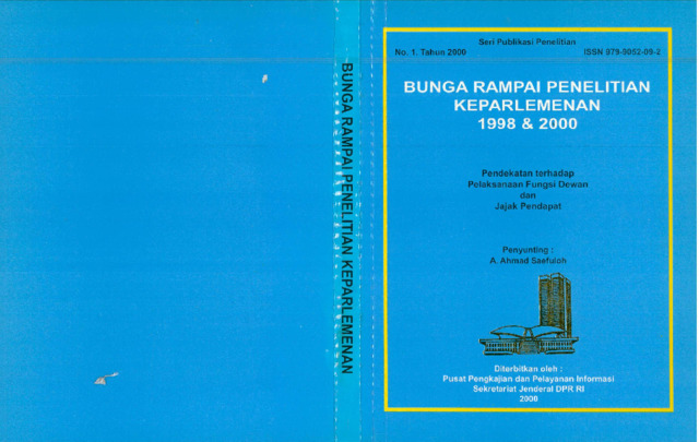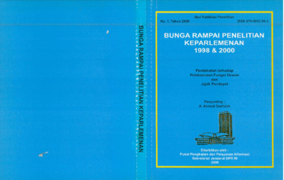 Buku Bunga Rampai Penelitian Keparlemenan 1998 dan 2000: Pendekatan terhadap Pelaksanaan Fungsi Dewan dan Jejak Pendapat berisi hasil penelitian yang dilakukan oleh Pusat Pengkajian dan Pelayanan Informasi Sekretariat Jenderal DPR RI. Buku ini memaparkan analisis mengenai efektivitas pelaksanaan fungsi legislasi, pengawasan, dan representasi DPR RI pada masa pasca-reformasi, serta hasil survei opini publik terhadap kinerja parlemen. Penelitian ini menggambarkan dinamika perubahan kelembagaan, hubungan antara DPR dan pemerintah, serta pandangan masyarakat terhadap peran wakil rakyat dalam memperjuangkan aspirasi publik. Buku ini menjadi dokumen penting dalam merekam proses transformasi DPR RI menuju lembaga yang lebih transparan, akuntabel, dan responsif terhadap perubahan politik nasional.