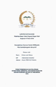 Laporan ini membahas pelaksanaan kegiatan aktualisasi berjudul Pemutakhiran Formula Terkait APBN pada Website puskajianggaran.dpr.go.id, yang dilakukan di Pusat Kajian Anggaran Sekretariat Jenderal dan Badan Keahlian DPR RI. Kegiatan ini dilatarbelakangi oleh belum diperbaruinya informasi formula APBN sejak tahun 2017, sehingga diperlukan pembaruan data agar sesuai dengan perkembangan kebijakan fiskal terbaru. Melalui proses analisis, validasi, dan koordinasi lintas unit, penulis berhasil memperbarui sejumlah formula utama seperti Dana Alokasi Umum (DAU), Dana Bagi Hasil (DBH), dan Dana Desa. Formula tersebut kemudian diunggah ke portal Knowledge Management Pusat Kajian Anggaran untuk meningkatkan aksesibilitas informasi bagi analis APBN dan masyarakat. Inovasi ini memperkuat transparansi, akurasi, serta efisiensi pengelolaan data anggaran negara, sekaligus mencerminkan penerapan nilai ASN ANEKA dalam kerja profesional, akuntabel, dan berorientasi pelayanan publik berbasis teknologi informasi.