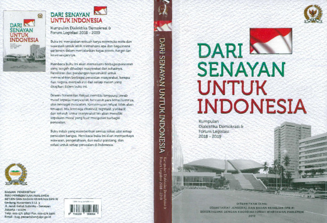 Buku Dari Senayan untuk Indonesia: Kumpulan Dialektika Demokrasi dan Forum Legislasi 2018–2019 memuat dokumentasi hasil diskusi, wawancara, dan ulasan media mengenai berbagai isu penting yang dibahas oleh DPR RI selama periode 2018–2019. Topik yang diangkat meliputi dinamika pembentukan undang-undang, isu ekonomi nasional, reformasi birokrasi, pembangunan daerah, serta partisipasi publik dalam proses legislasi. Melalui kumpulan narasi dan pandangan anggota dewan, buku ini mencerminkan semangat transparansi parlemen dalam menyampaikan gagasan kebijakan dan aspirasi masyarakat. Publikasi ini juga berfungsi sebagai media informasi dan edukasi publik mengenai fungsi legislasi dan demokrasi di Indonesia.