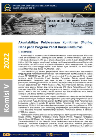 Widjaya, Djustiawan, Sukmalalana, Sukmalalana and Oktaviani, Andri (2022) Akuntabilitas Pelaksanaan Komitmen Sharing Dana pada Program Padat Karya Pamsimas. Accountability Brief.