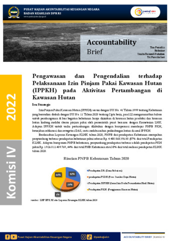 Helmizar, Helmizar, Nababan, Yunita Romauli and Sari, Tri Purwita (2022) Pengawasan dan Pengendalian terhadap Pelaksanaan Izin Pinjam Pakai Kawasan Hutan (IPPKH) pada Aktivitas Pertambangan di Kawasan Hutan. Accountability Brief.
