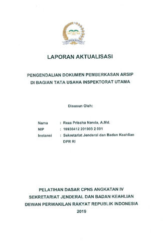 Nanda, Reza Prischa (2019) Pengendalian Dokumen Pemberkasan Arsip di Bagian Tata Usaha Inspektorat Utama. Project Report. Pusat Pengembangan Kompetensi Sumber Daya Manusia Legislatif, Jakarta.