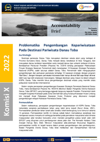 Helmizar, Helmizar, Ananto, Eko Adityo and Ahmad, Alfi Mufida (2022) Problematika Pengembangan Kepariwisataan Pada Destinasi Pariwisata Danau Toba. Accountability Brief.