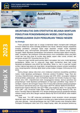 Ananto, Eko Adityo and Orrefsia, Hafshah Anida (2022) Akuntabilitas dan Efektivitas Belanja Bantuan Penelitian Pengembangan Model Digitalisasi Pembelajaran oleh Perguruan Tinggi Negeri. Accountability Brief.