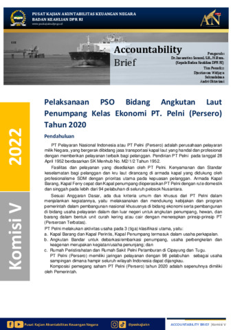 Widjaya, Djustiawan, Sukmalalana, Sukmalalana and Oktaviani, Andri (2022) Pelaksanaan PSO Bidang Angkutan Laut Penumpang Kelas Ekonomi PT. Pelni (Persero) Tahun 2020. Accountability Brief.
