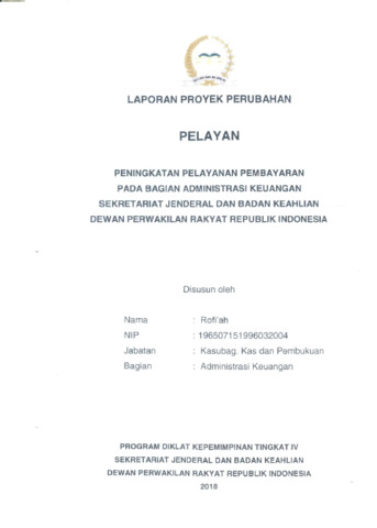 Rofi'ah, Rofi'ah (2018) Laporan proyek perubahan : peningkatan pelayanan pembayaran pada bagian administrasi keuangan sekretariat jenderal dan badan keahlian Dewan Perwakilan Rakyat Republik Indonesia. Project Report. Dewan Perwakilan Rakyat Republik Indonesia, Jakarta.