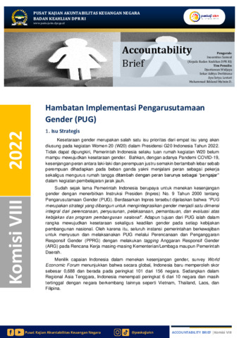POLICY BRIEF KOMISI VIII_Hambatan Implementasi Pengarusutamaan Gender (PUG).pdf - Published Version