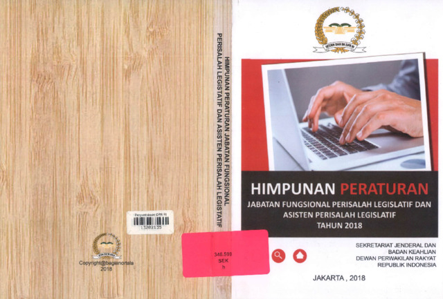 Buku Himpunan Peraturan Jabatan Fungsional Perisalah Legislatif dan Asisten Perisalah Legislatif Tahun 2018 merupakan kompilasi lengkap peraturan perundang-undangan yang mengatur pembentukan, tugas, tanggung jawab, jenjang jabatan, serta pembinaan karier bagi pejabat fungsional di bidang perisalahan legislatif. Dokumen ini mencakup ketentuan yang ditetapkan melalui Peraturan Menteri Pendayagunaan Aparatur Negara dan Reformasi Birokrasi Nomor 26 dan 27 Tahun 2017, serta peraturan pelaksanaan yang dikeluarkan oleh Sekretaris Jenderal DPR RI sebagai instansi pembina. Buku ini juga menguraikan mekanisme pengangkatan, penilaian angka kredit, pelatihan, pengembangan kompetensi, hingga pembentukan organisasi profesi yang mengatur etika dan perilaku jabatan. Sebagai acuan resmi, buku ini menjadi pedoman bagi pelaksanaan jabatan fungsional perisalah legislatif di lingkungan DPR RI maupun sekretariat dewan daerah di seluruh Indonesia.