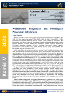 Sukmalalana, Sukmalalana and Oktaviani, Andri (2023) Problematika Penyediaan dan Pembiayaan Perumahan di Indonesia. Accountability Brief.