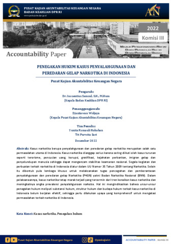 Paper BK Penegakan Hukum Kasus Penyalahgunaan dan Peredaran Gelap Narkotika.pdf - Published Version