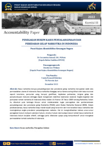 Nababan, Yunita Romauli and Sari, Tri Purwita (2022) Penegakan Hukum Kasus Penyalahgunaan dan Peredaran Gelap Narkotika di Indonesia. Working Paper. Pusat Kajian Akuntabilitas Keuangan Negara Badan Keahlian DPR RI, Jakarta.