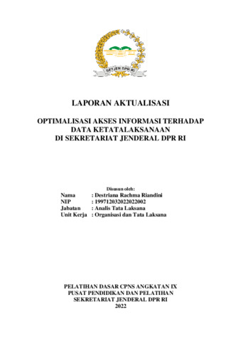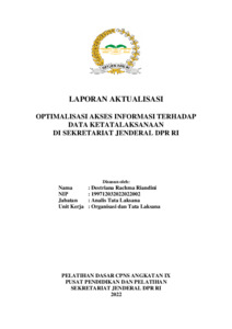 Riandini, Destriana Rachma (2022) Optimalisasi Akses Informasi Terhadap Data Ketatalaksanaan di Sekretariat Jenderal DPR RI. Project Report. Pusat Pendidikan dan Pelatihan, Jakarta.