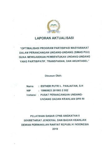 OPTIMALISASI PROGRAM PARTISIPASI MASYARAKAT DALAM PERENCANAAN UNDANG-UNDANG [SIMAS PUU] GUNA MEWUJUDKAN PEMBENTUKAN UNDANG-UNDANG YANG PARTISIPSTIF, TRANSPARAN DAN AKUNTABLE.pdf - Published Version