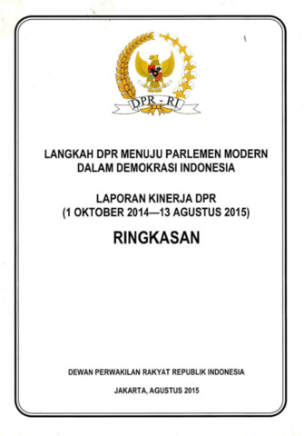 Dewan Perwakilan Rakyat Republik Indonesia, Dewan Perwakilan Rakyat Republik Indonesia (2015) Langkah DPR menuju parlemen modern dalam demokrasi Indonesia – laporan kinerja DPR (1 Oktober 2014 – 13 Agustus 2015). Technical Report. Dewan Perwakilan Rakyat Republik Indonesia, Jakarta.