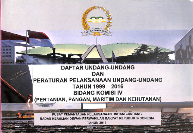 Badan Keahlian DPR RI, Pusat Pemantauan Pelaksanaan Undang-Undang (2017) Daftar Undang-Undang dan Peraturan Pelaksanaan Undang-Undang Tahun 1999–2016 Bidang Komisi IV (Pertanian, Pangan, Maritim, dan Kehutanan). Discussion Paper. Dewan Perwakilan Rakyat Republik Indonesia, Jakarta.