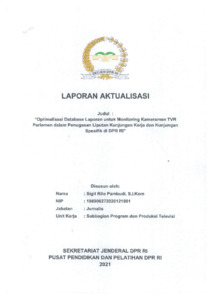 OPTIMALITAS DATABASE LAPORAN UNTUK MONITORING KAMERAMEN TVR PARLEMEN DALAM PENUGASAN LIPUTAN KUNJUNGAN KERJA DAN KUNJUNGAN SPESIFIK DI DPR RI.pdf - Published Version