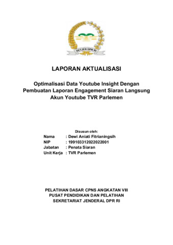 Fitrianingsih, Dewi Aniati (2022) Optimalisasi Data Youtube Insight Dengan Pembuatan Laporan Engagement Siaran Langsung Akun Youtube TVR Parlemen. Project Report. Pusat Pendidikan dan Pelatihan, Jakarta.