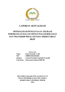 Parastiti, Fajar (2022) Optimalisasi Penggunaan Aplikasi Persidangan dalam Mengunggah Rekaman dan Transkrip Risalah pada Sekretariat BKSP. Project Report. Pusat Pendidikan dan Pelatihan, Jakarta.