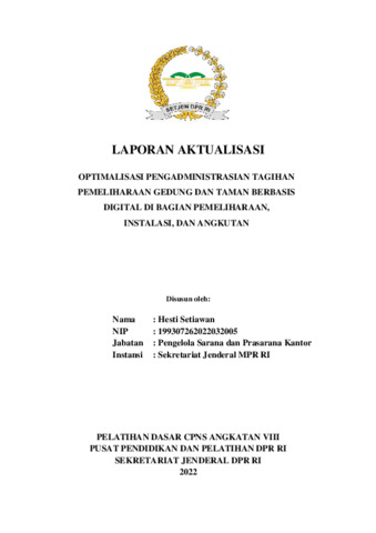 Setiawan, Hesti (2022) Optimalisasi Pengadministrasian Tagihan Pemeliharaan Gedung dan Taman Berbasis Digital di Bagian Pemeliharaan, Instalasi, dan Angkutan. Project Report. Pusat Pendidikan dan Pelatihan, Jakarta.