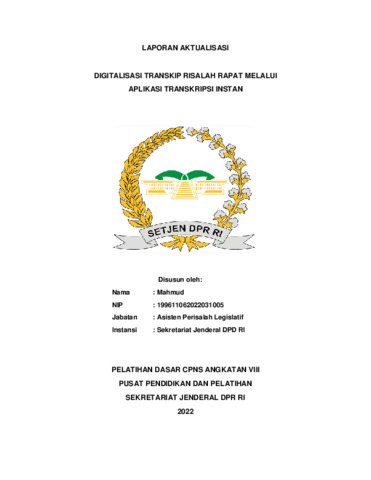Mahmud, Mahmud (2022) Digitalisasi Transkip Risalah Rapat Melalui Aplikasi Transkripsi Instan. Project Report. Pusat Pendidikan dan Pelatihan, Jakarta.