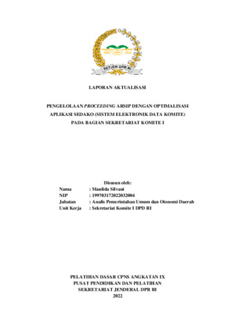 Silvani, Maulida (2022) Pengelolaan Proceeding Arsip dengan Optimalisasi Aplikasi SEDAKO (Sistem Elektronik Data Komite) pada Bagian Sekretariat Komite I. Project Report. Pusat Pendidikan dan Pelatihan, Jakarta.