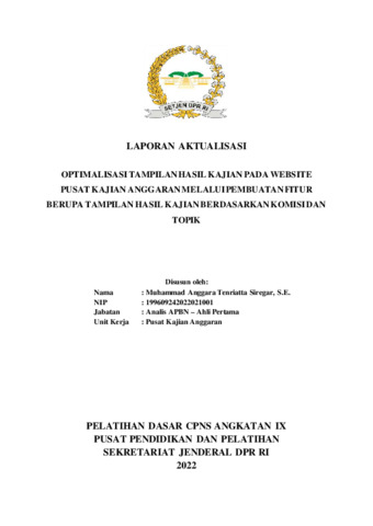 Laporan aktualisasi ini berfokus pada optimalisasi tampilan hasil kajian pada website Pusat Kajian Anggaran dengan menambahkan fitur baru berupa tampilan hasil kajian yang dikelompokkan berdasarkan komisi dan topik pembahasan. Sebelumnya, tampilan website hanya mengelompokkan kajian berdasarkan jenis output, seperti Analisis APBN, ARC, dan Jurnal APBN, tanpa pengkategorian yang memudahkan pencarian informasi bagi pengguna, khususnya Anggota DPR. Melalui kegiatan ini, penulis melakukan identifikasi dan pengolahan data hasil kajian, menyusun daftar kajian per komisi dan topik, mengajukan pengembangan fitur baru kepada Pusat Teknologi Informasi (Pustekinfo), serta melakukan sosialisasi dan evaluasi kepada para analis di Pusat Kajian Anggaran. Hasil implementasi menunjukkan peningkatan kemudahan akses dan efisiensi pencarian data, serta peningkatan trafik kunjungan website. Inovasi ini mencerminkan penerapan nilai ASN BerAKHLAK (Berorientasi Pelayanan, Akuntabel, Kompeten, Adaptif, Kolaboratif) dan mendukung visi Pusat Kajian Anggaran sebagai organisasi penyedia referensi kajian anggaran yang profesional dan modern.